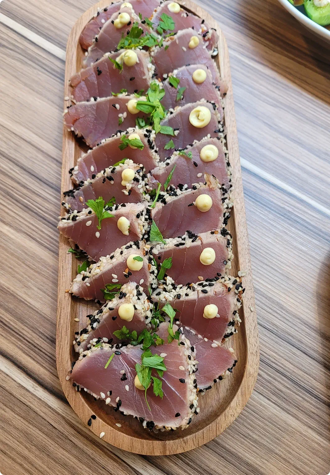 - Carpaccio de daurade, vinaigrette au fruit de la passion