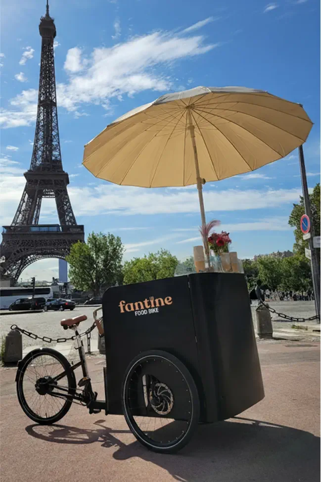 Parce qu’on aime les bons produits, les bons moments et les belles rencontres, j’ai créé Fantine Food Bike : un triporteur culinaire autonome qui vient à vous pour régaler vos invités, sans prise de tête (et sans prise électrique, sauf si besoin !).